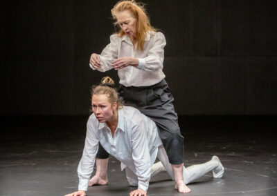 Visuaalisesti avara ja syvään hengittävä teos keskittyy ihmisen sisäisen maailman ja ruumiin kantaman historian purkamiseen; hengitykseen, joka on keskeinen inhimillisen aistillisuuden, lihallisuuden ja haavoittuvuuden ilmaisija. Se ottaa kiinni meissä asuvista ja ulkoa omaksutuista ristiriidoista, pimeän kokemuksesta ja hengittää ulos tanssin.