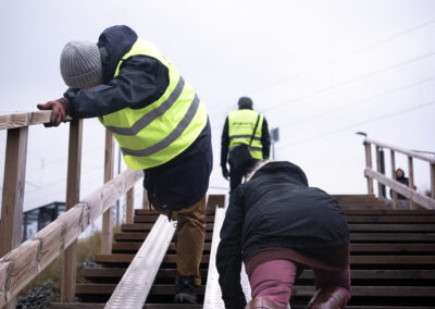 We are working with a project where we develop movement methods related to embodied care, in the Hiedanranta area in Tampere, Finland, in the area that is undergoing a dramatic scale of change. We want to help people working in and visiting the area to live as part of the transition. Through physical activity, we practice creating a relationship with places and through this, we develop our agency in the space. The workshops we organise in that area enable also encounters between people working in and those interested in the area. The interdisciplinary project focuses on comprehensively studying the Hiedanranta area in transition. In the field trip in Copenhagen we want to deepen our knowledge by comparing our findings with international colleagues to develop our practice.